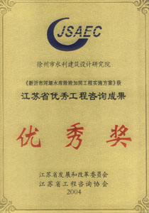 《睢北河工程可研報(bào)告》咨詢(xún)優(yōu)秀獎(jiǎng)(2003)