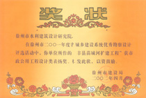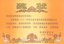 《豐縣苗城河擴(kuò)建工程》市設(shè)計(jì)表?yè)P(yáng)獎(jiǎng)(2002)