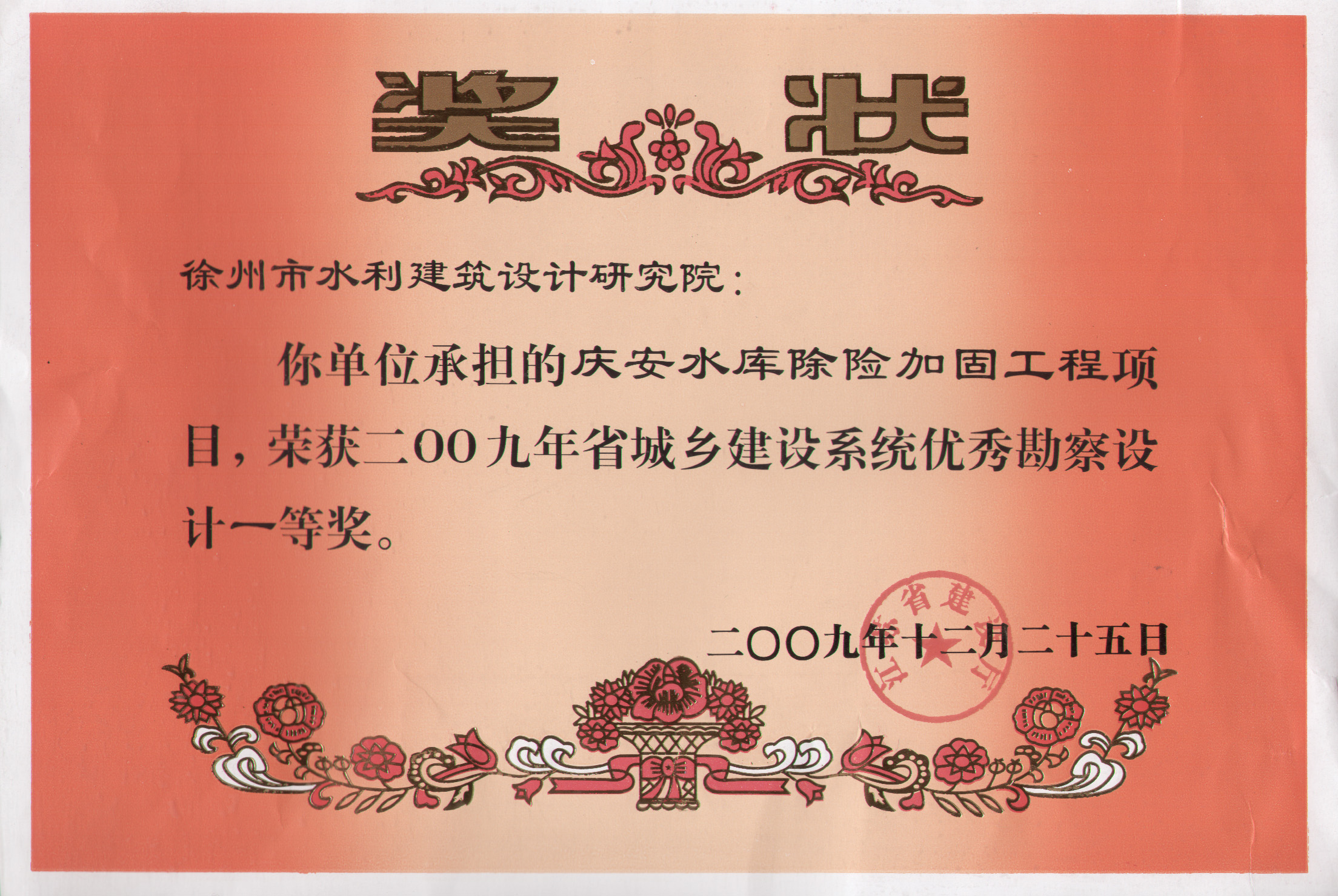 《慶安水庫(kù)除險(xiǎn)加固工程》省城鄉(xiāng)建設(shè)系統(tǒng)勘察一等獎(jiǎng)(2