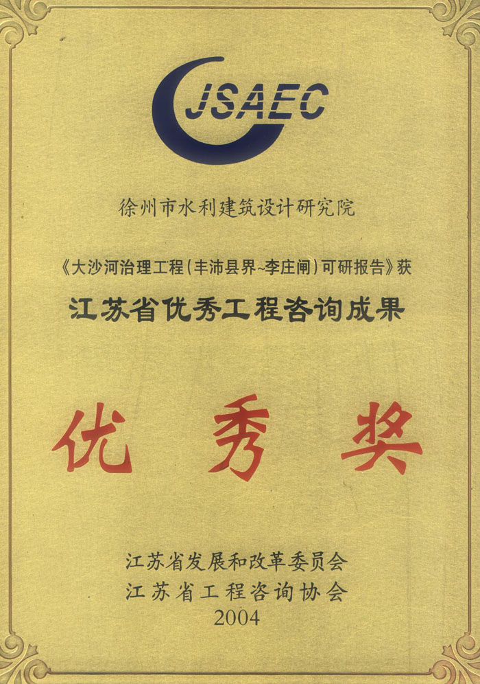 《大沙河治理工程可研》省咨詢成果獎(jiǎng)(2004)